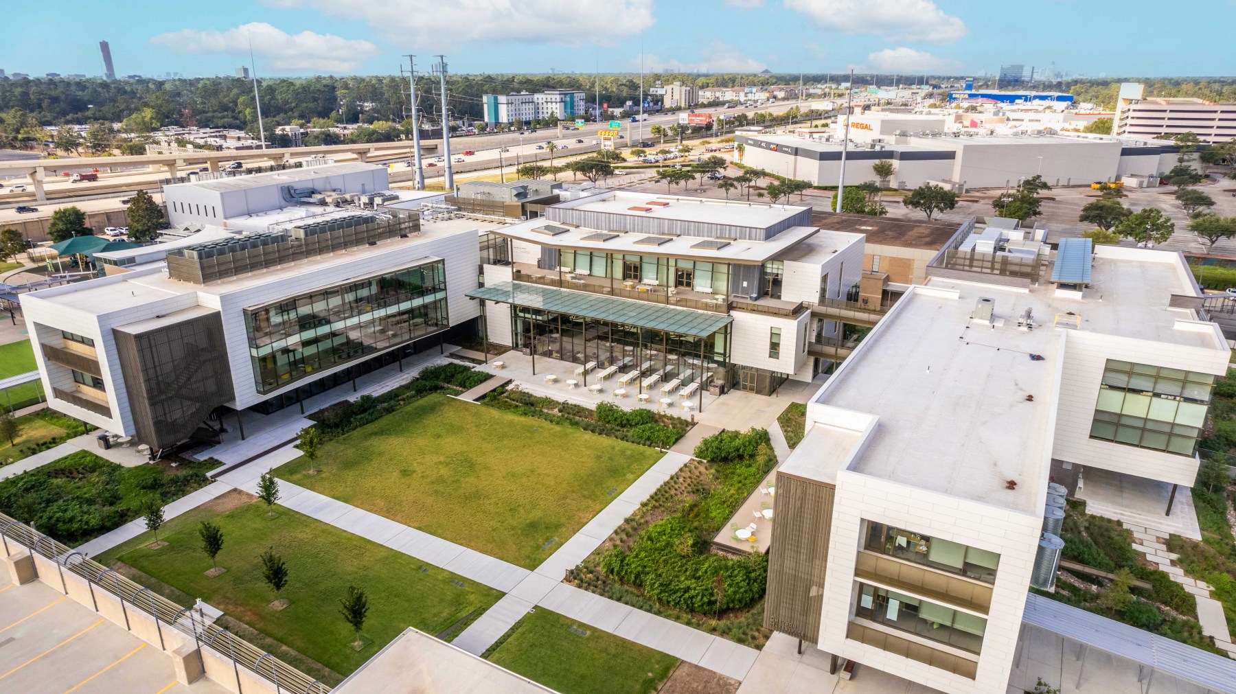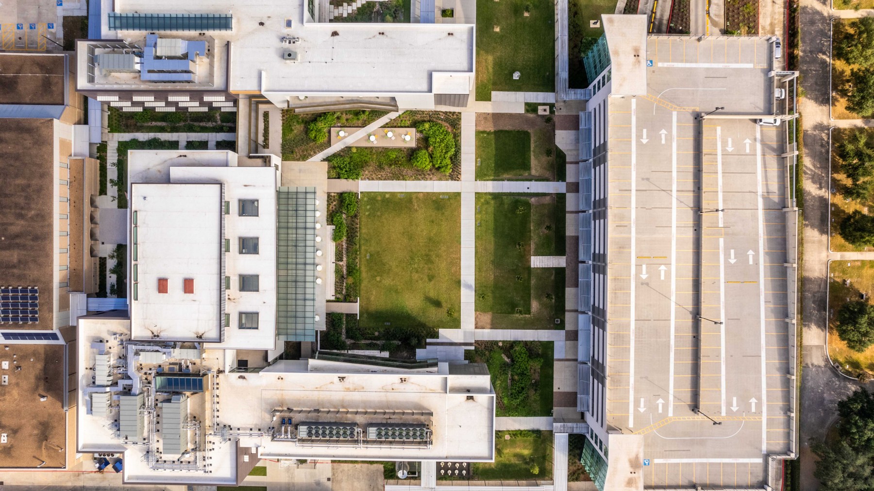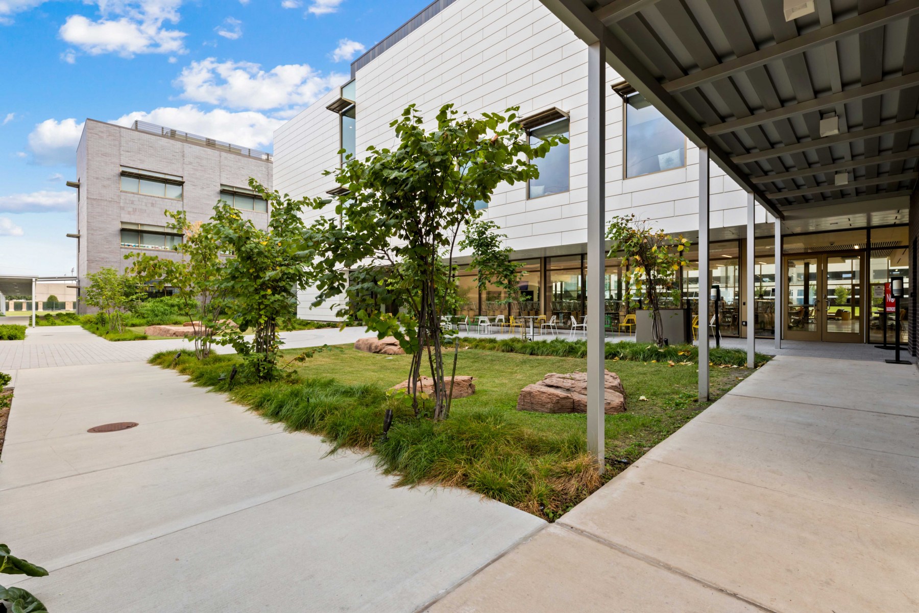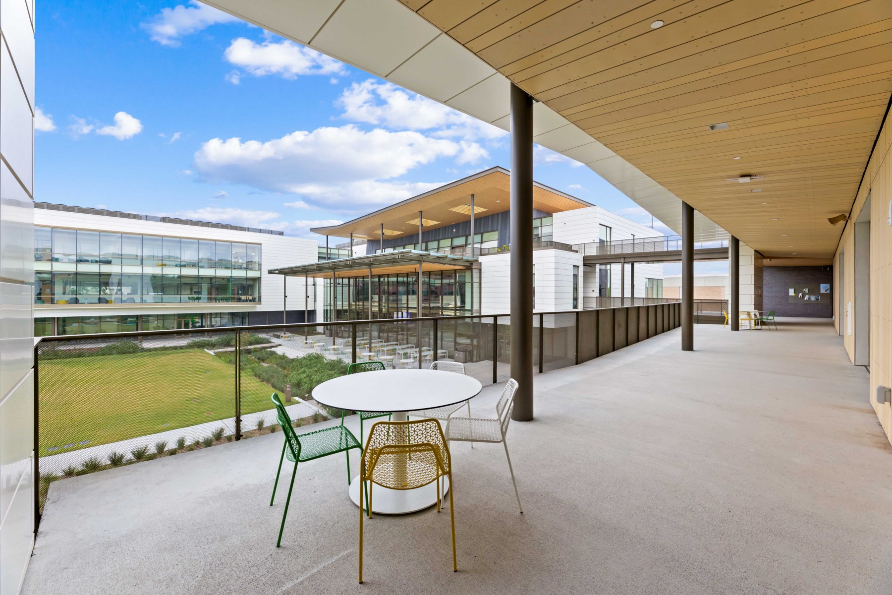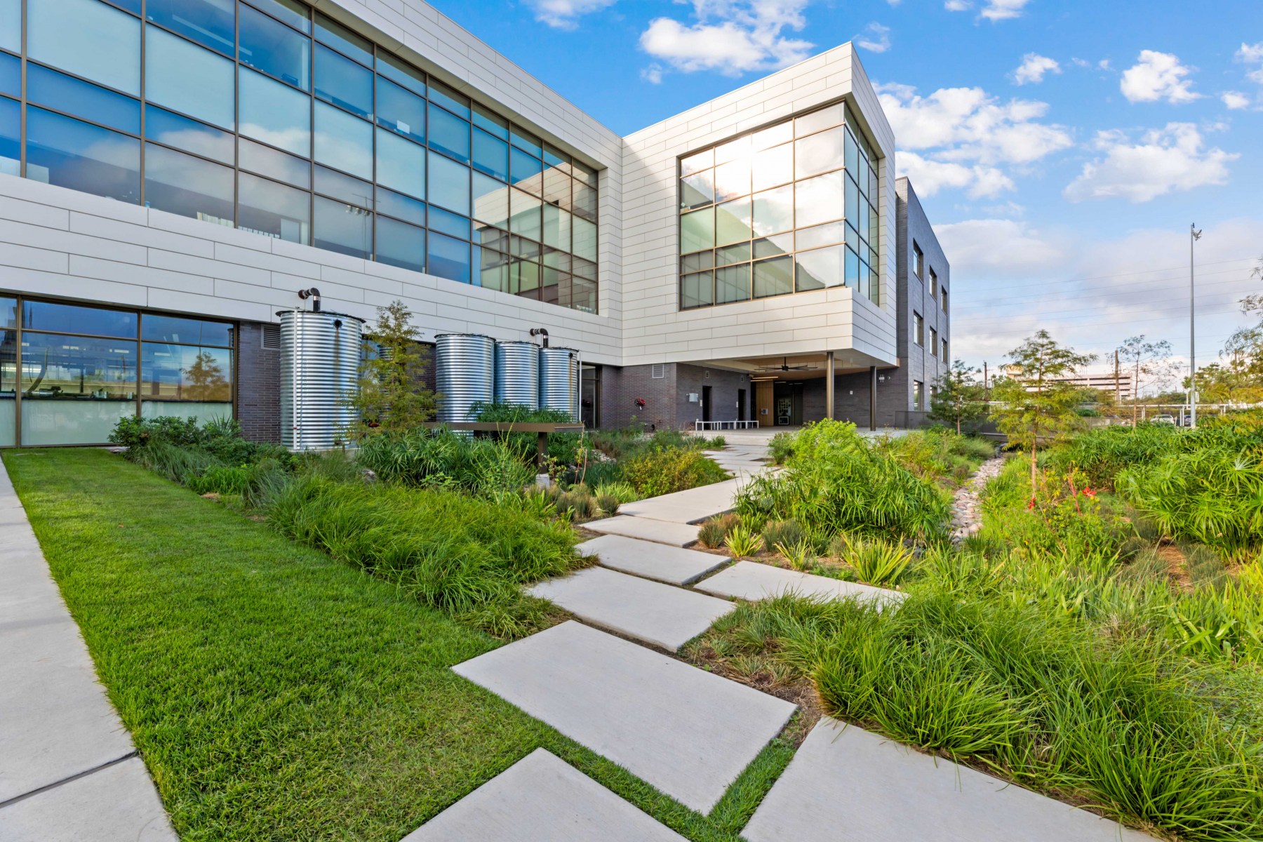The Awty International School’s Student Center is the heart of the campus, supporting the country’s most extensive International and French Baccalaureate K-12 program. The structures in the student center, including the dining area, library/media center, performance space, STEM labs, maker studio, collaboration areas, and classrooms, are all joined by a large, central courtyard. The Student Center also fosters outdoor learning, community building, and play spaces surrounded by lush rain gardens, rainwater cisterns, hydroponic containers, and shaded porches. The Zero Energy-ready campus also demonstrates sustainable practices in stormwater management, food cycling, and onsite energy generation.