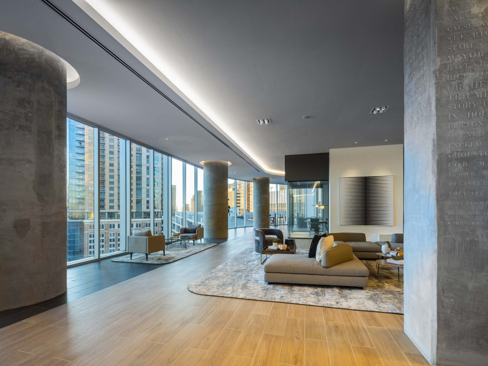 Brava is a luxurious, high-rise residential tower located in Downtown Houston. This 47-story building features 373 residences and a range of exceptional amenities. These include a 24-hour concierge, valet parking, and a 46th-floor sky amenity deck, providing panoramic skyline views. The sky amenity deck also includes a private resident dining room and catering kitchen, making it perfect for hosting events.
