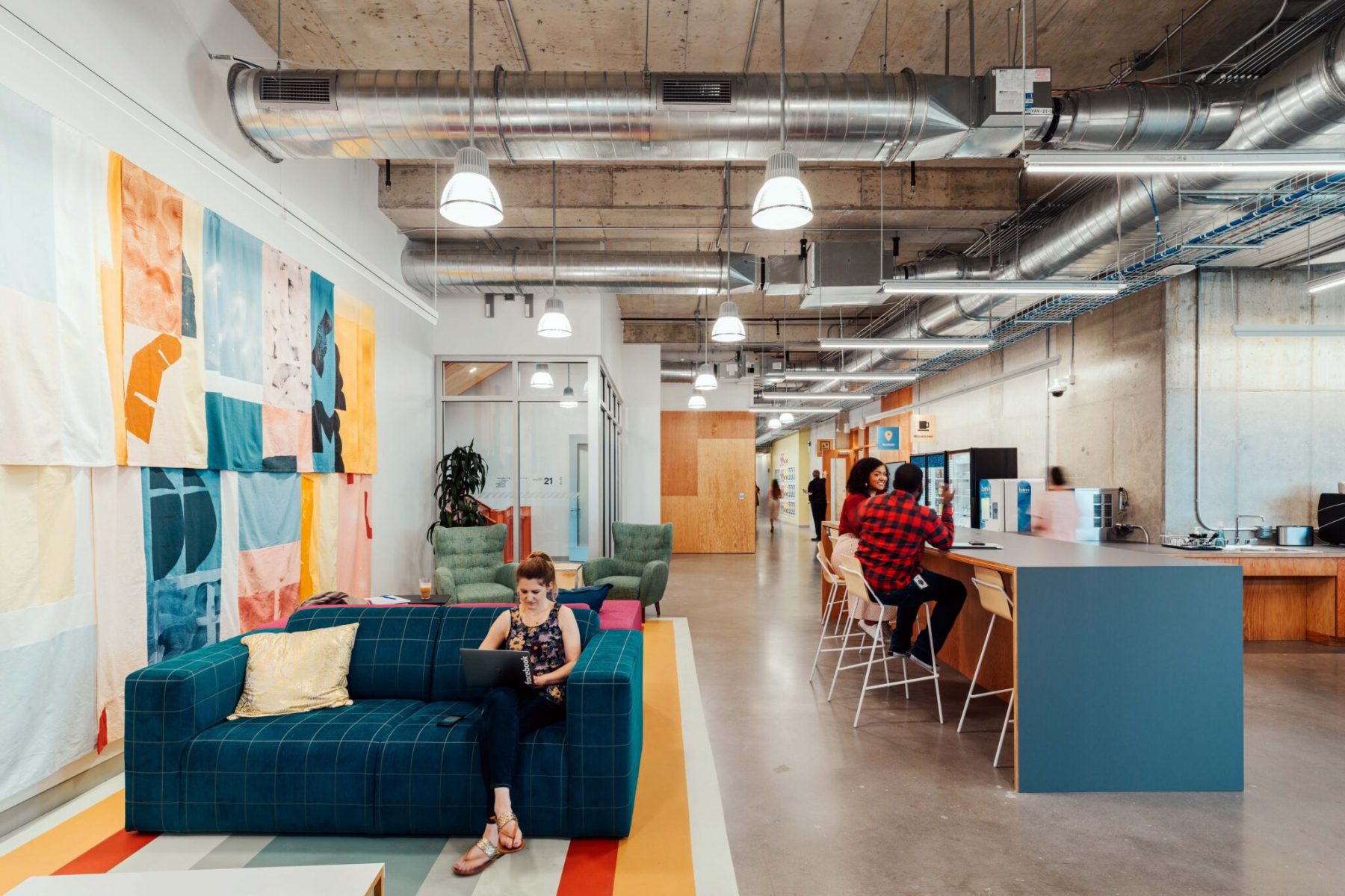 This 255,000 SF project is an 11-story interior tenant finish-out located at the corner of 3rd and Nueces in Downtown Austin, TX. Eight floors consist of employee workstations in an open office concept, interior collaboration and conference rooms, training rooms, multipurpose rooms, and micro-kitchens. The remaining three floors are designated kitchen and dining areas to accommodate many employees. Two floors also contain managed event spaces for training and marketing events, where specialty track lighting, extensive AV equipment, and motorized shades amplify the space’s ambiance. Each floor has a dedicated balcony, with the largest terrace on the 22nd floor featuring tensioned market lighting, planter boxes and custom metal fabricated parklet seating.